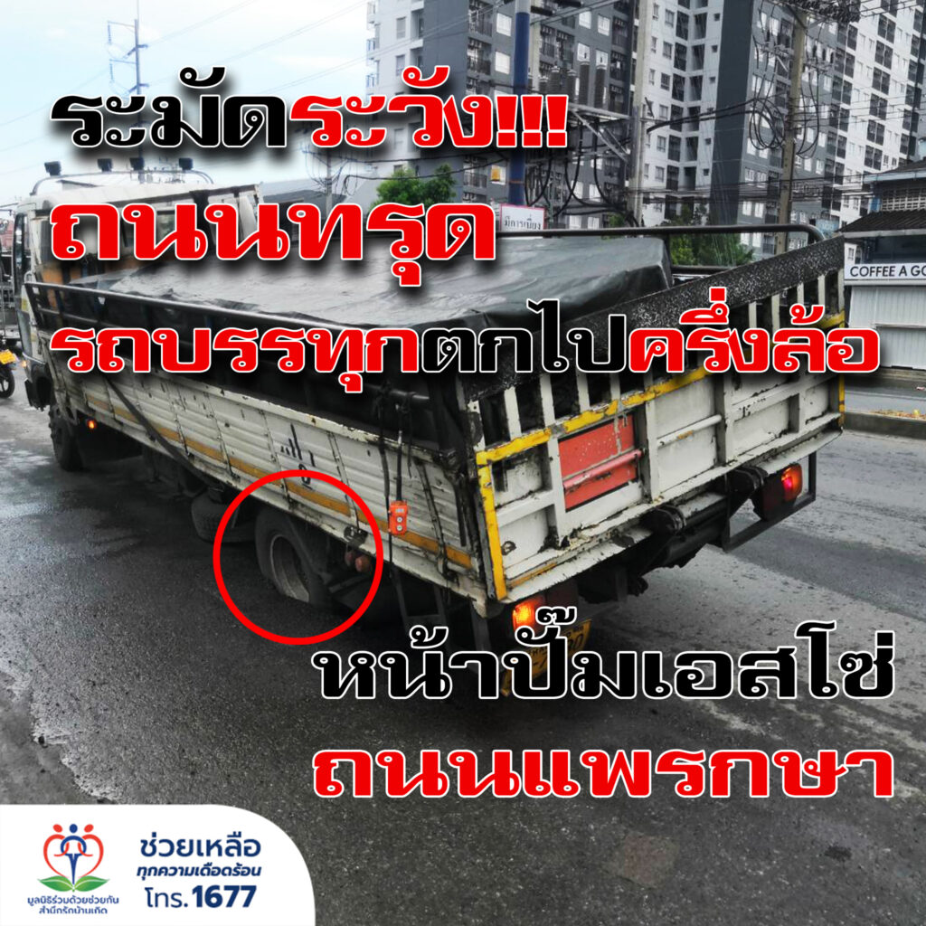 ถนนทรุดตัว! หน้าปั๊มน้ำมันเอสโซ่ ถ.แพรกษา