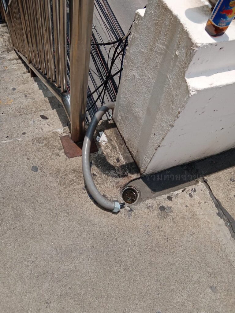 เตือนระวัง!! ท่อร้อยสายไฟชำรุด บนสะพานลอย ปากซอยนวมินทร์ 63