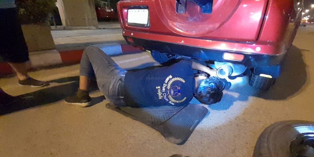 รถยางแตก กลางถนนประดิษฐ์มนูธรรม อาสาช่วยเปลี่ยนยางให้