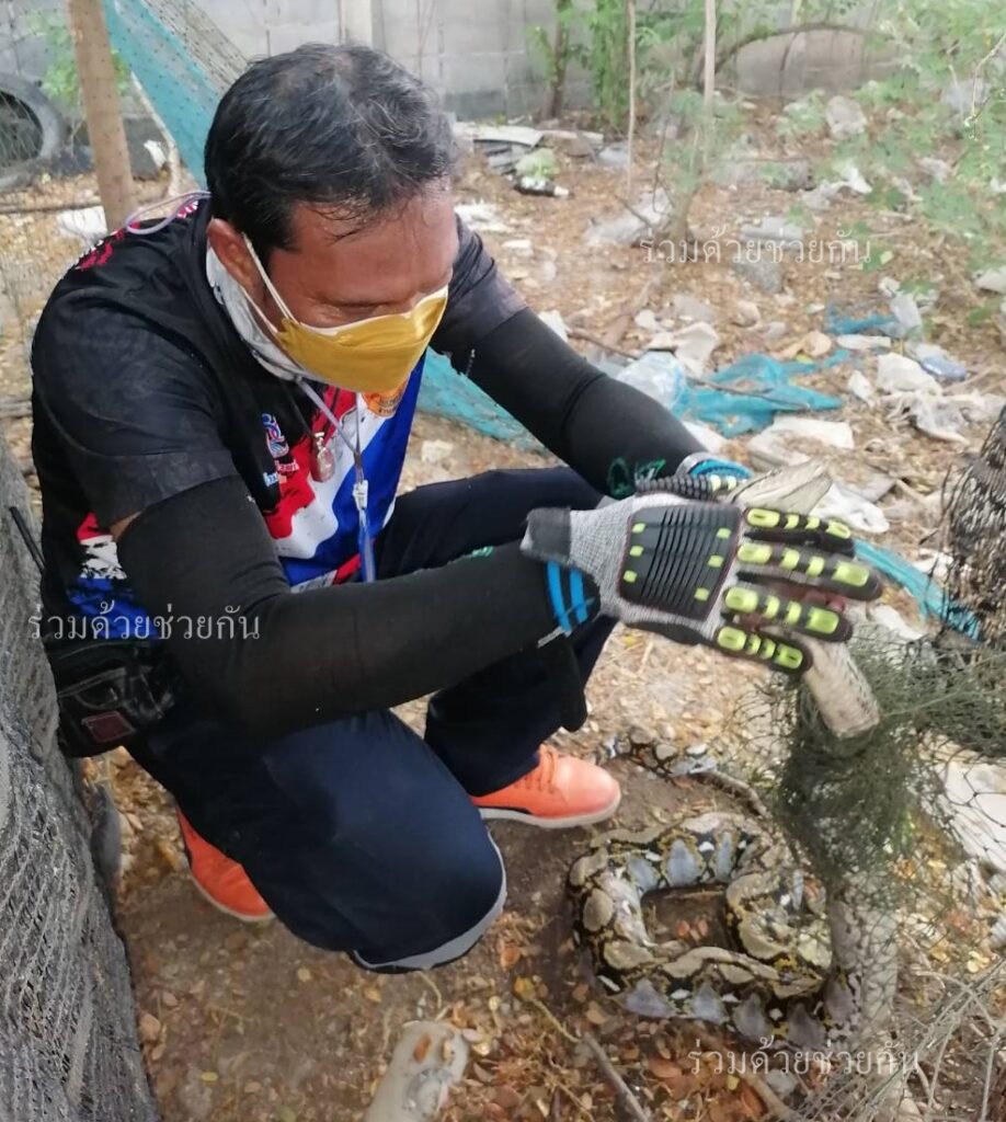 อาสาช่วยได้! ประชาชนร้องขอความช่วยเหลือจับงูเหลือม ถ.รามอินทรา ซอย 33