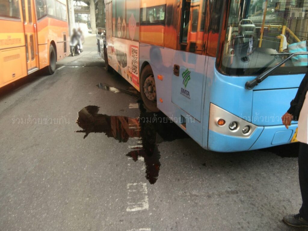 รถเมล์น้ำมันรั่วไหล ถ.รามคำแหง
