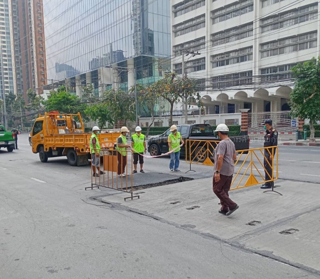 แผ่นปูนทรุด กลางถนนเพชรบุรี