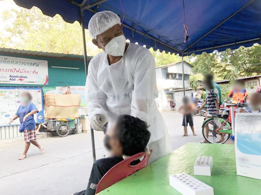 อาสาร่วมด้วยฯ ร่วมกับทีมงานเส้นด้าย ให้บริการตรวจโควิด-19 เชิงรุก จำนวน 100 คน