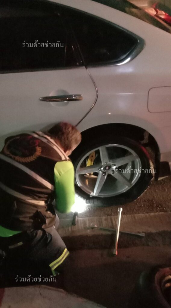 อาสาช่วยได้! ประชาชนร้องขอความช่วยเหลือรถล้อยางแตก จอดอยู่พระราม 2