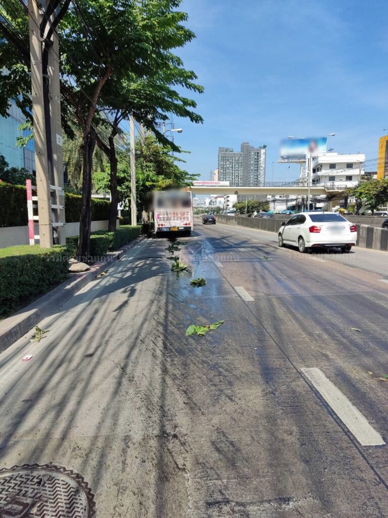รถโดยสารประจำทางน้ำมันรั่ว คราบไหลนองเกลื่อนถนนรัชดาภิเ […]