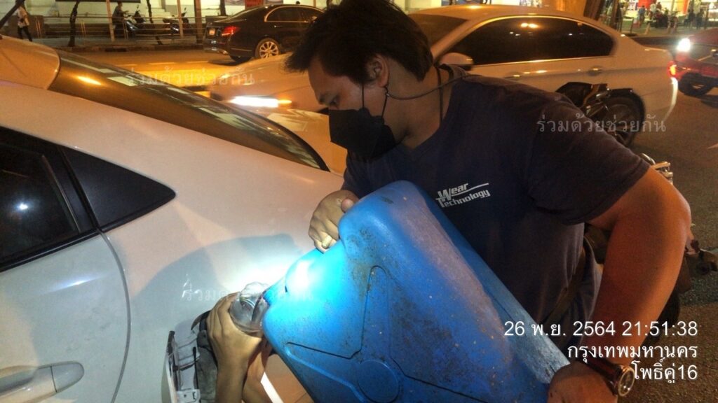 อาสาร่วมด้วยฯ ช่วยรถยนต์น้ำมันหมด ถนนเพชรบุรี