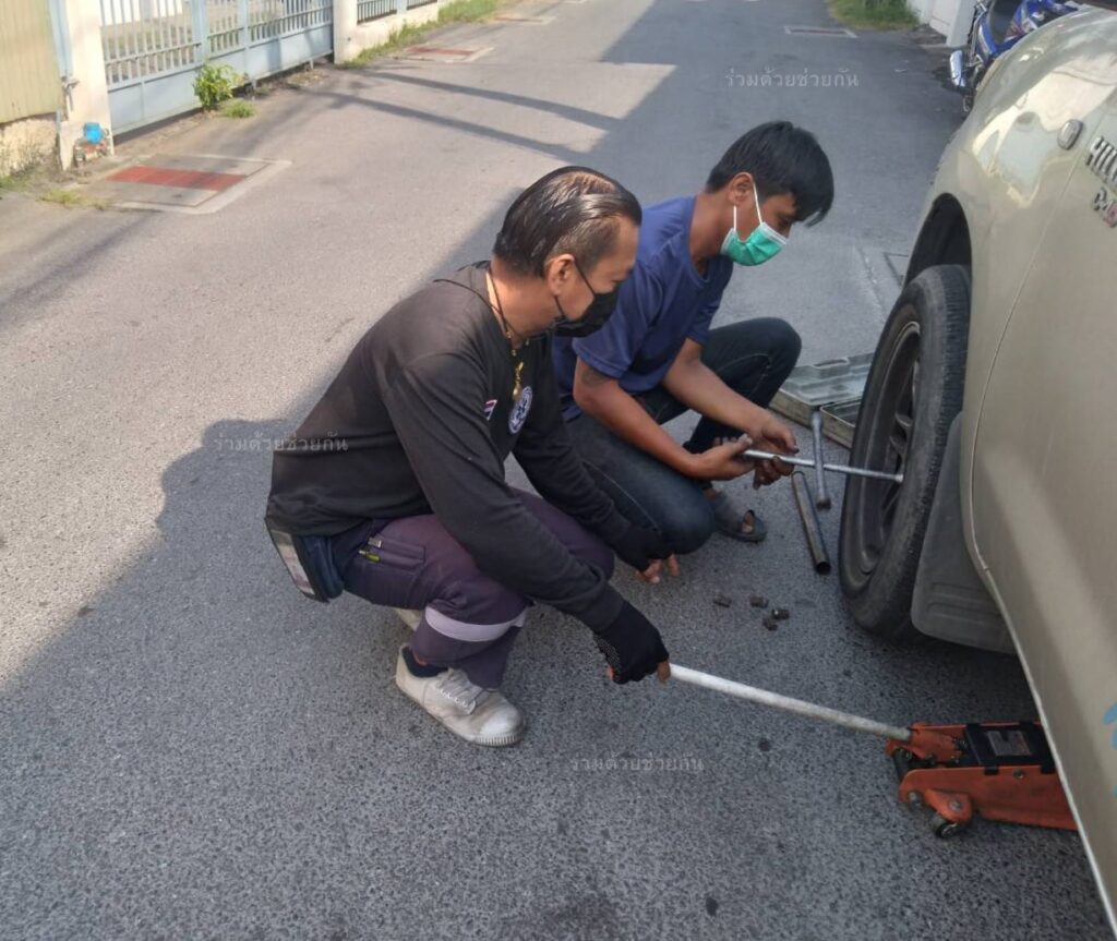 รถกระบะประชาชนล้อยางรั่ว อยู่ซอยปรีดีพนมยงค์ 37 อาสาร่วมด้วยรีบเข้าช่วยเหลือ