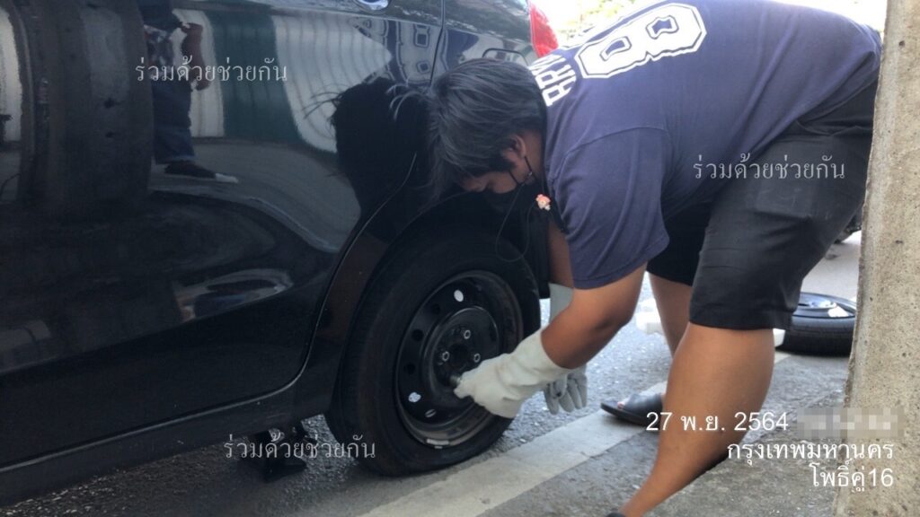 อาสาช่วยได้! ประชาชนขอความช่วยเหลือรถล้อยางรั่ว จอดอยู่ถนนเพชรบุรี