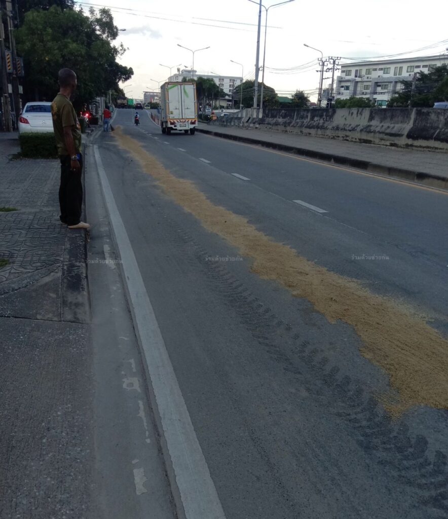 คราบน้ำมันหกบนพื้นถนน อุโมงค์ถาวรธวัช – รามคำแหง ซอย 24