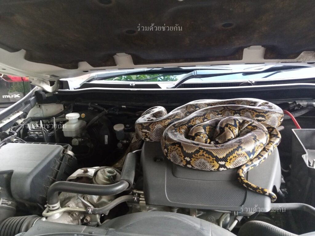 อาสาช่วยได้! ประชาชนขอความช่วยเหลือจับงูเหลือมอยู่ในห้องเครื่องรถ จ.ปทุมธานี