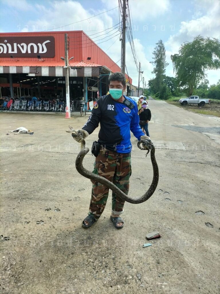 อาสาร่วมด้วยฯ ช่วยเหลือประชาชนจับงูเหลือม ถนนเลียบคลองสอง อำเภอคลองหลวง จังหวัดปทุมธานี