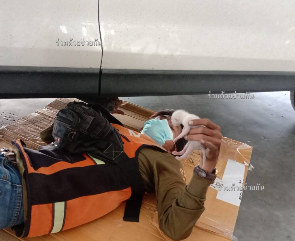 อาสาร่วมด้วยฯ ช่วยลูกแมว 4 ตัวติดใต้ท้องรถยนต์ ซอยศูนย์วิจัย 6