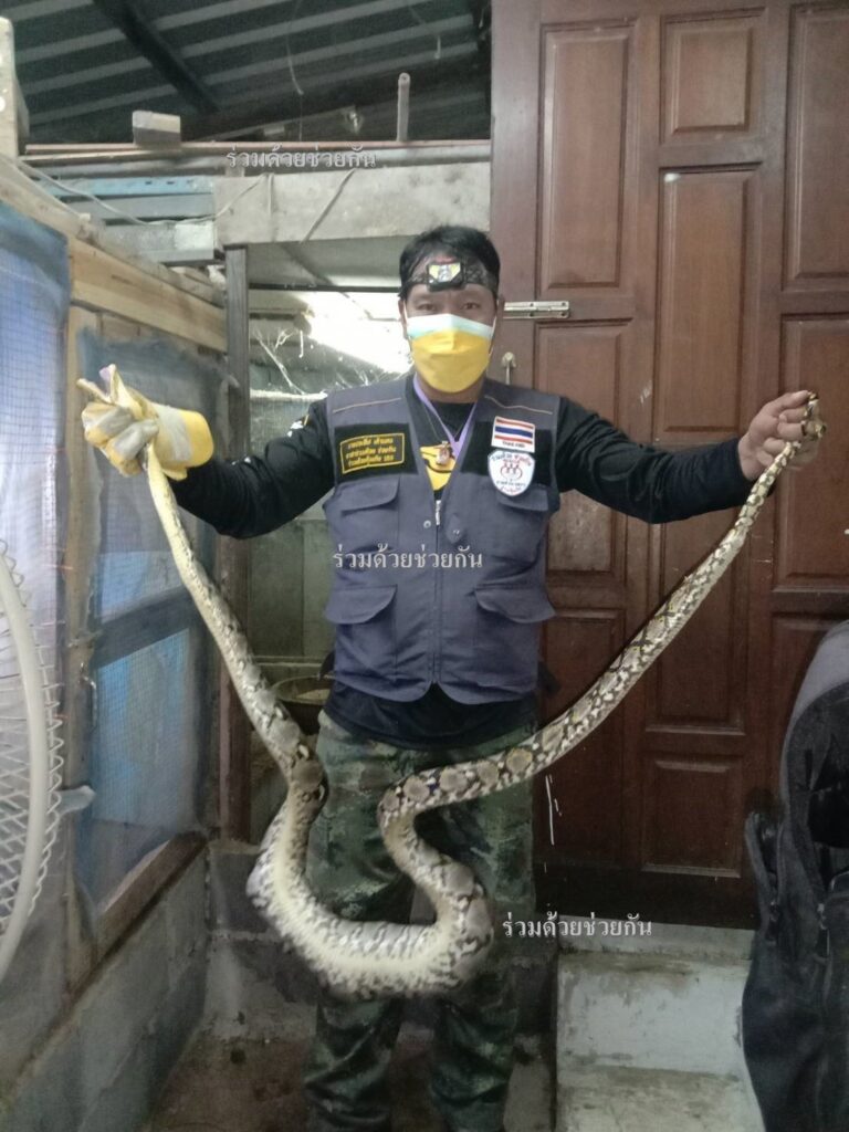 อาสาร่วมด้วยฯ ช่วยจับงูเหลือมในเล้าไก่ ซอยร่มเกล้า 25/5