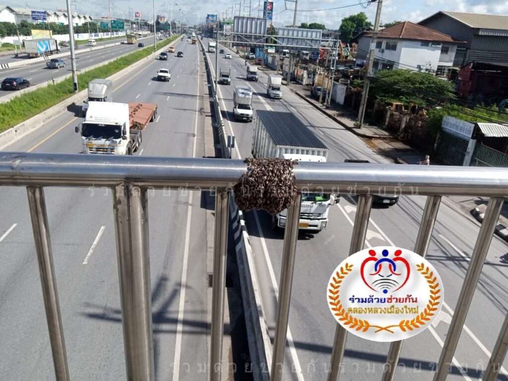 อาสาร่วมด้วยฯ ช่วยกำจัดรังผึ้งบนสะพานลอย ป้องกันผึ้งทำอันตรายชาวบ้านที่สัญจรผ่านไปมา