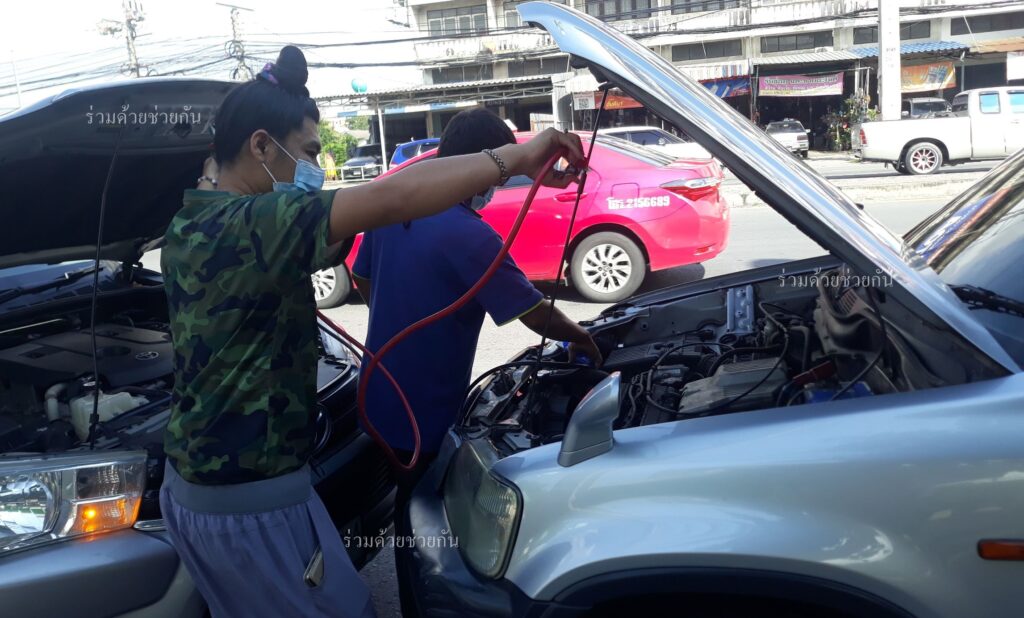 ประชาชนขอความช่วยเหลือรถแบตเหมด จอดอยู่ถนนติวานนท์-ปากเกร็ด อาสาร่วมด้วยช่วยกันเข้าช่วยเหลือพ่วงแบตเตอรี่รถให้เป็นที่เรียบร้อย