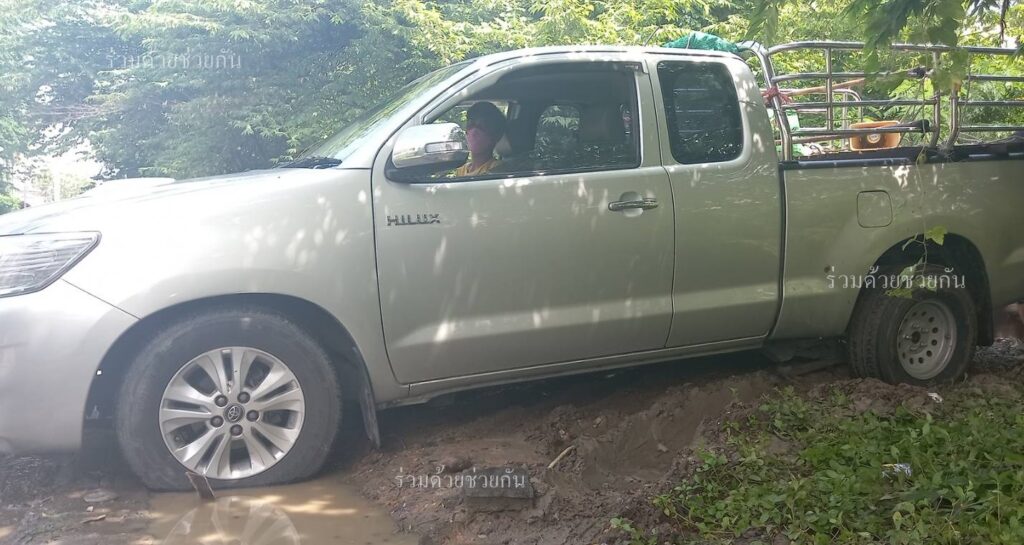 อาสาช่วยได้! ประชาชนร้องขอความช่วยเหลือรถกระบะติดหล่ม