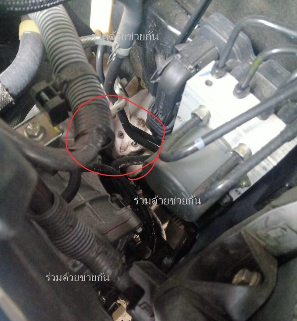 อาสาร่วมด้วยฯ ช่วยเหลือลูกแมว 2 ตัวติดในห้องเครื่องรถยนต์ ถนนสุขสวัสดิ์
