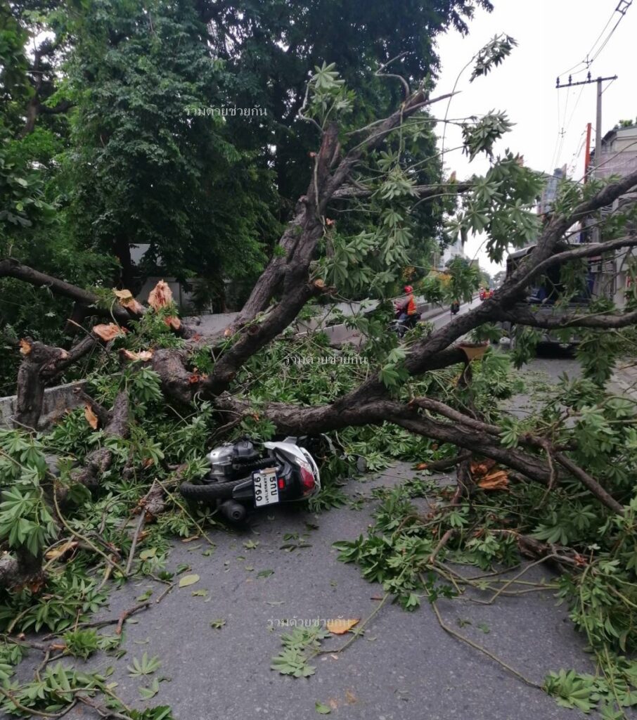 อาสาร่วมด้วยฯ แจ้งต้นไม้ใหญ่ล้มทับรถจยย. กีดขวางการจราจร ซอยสุขุมวิท 40