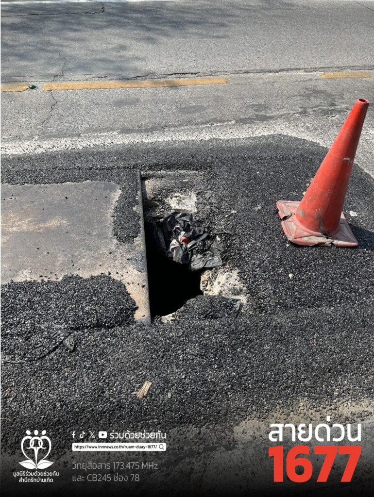 โปรดเลี่ยงและระมัดระวัง แผ่นเหล็กปิดฝาท่อระบายน้ำเปิดออก ซอยลาดพร้าว 80 แยก 22