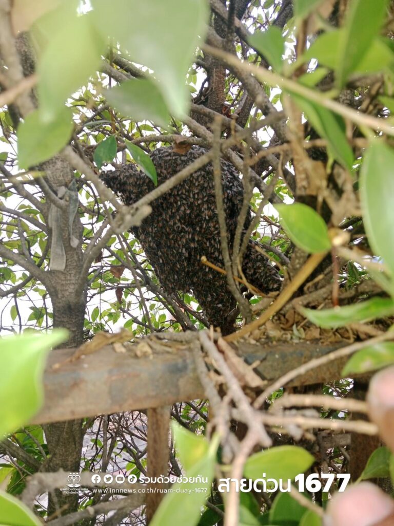 ผึ้งทำรังที่บ้าน หวั่นอันตราย แจ้งอาสาช่วยกำจัด