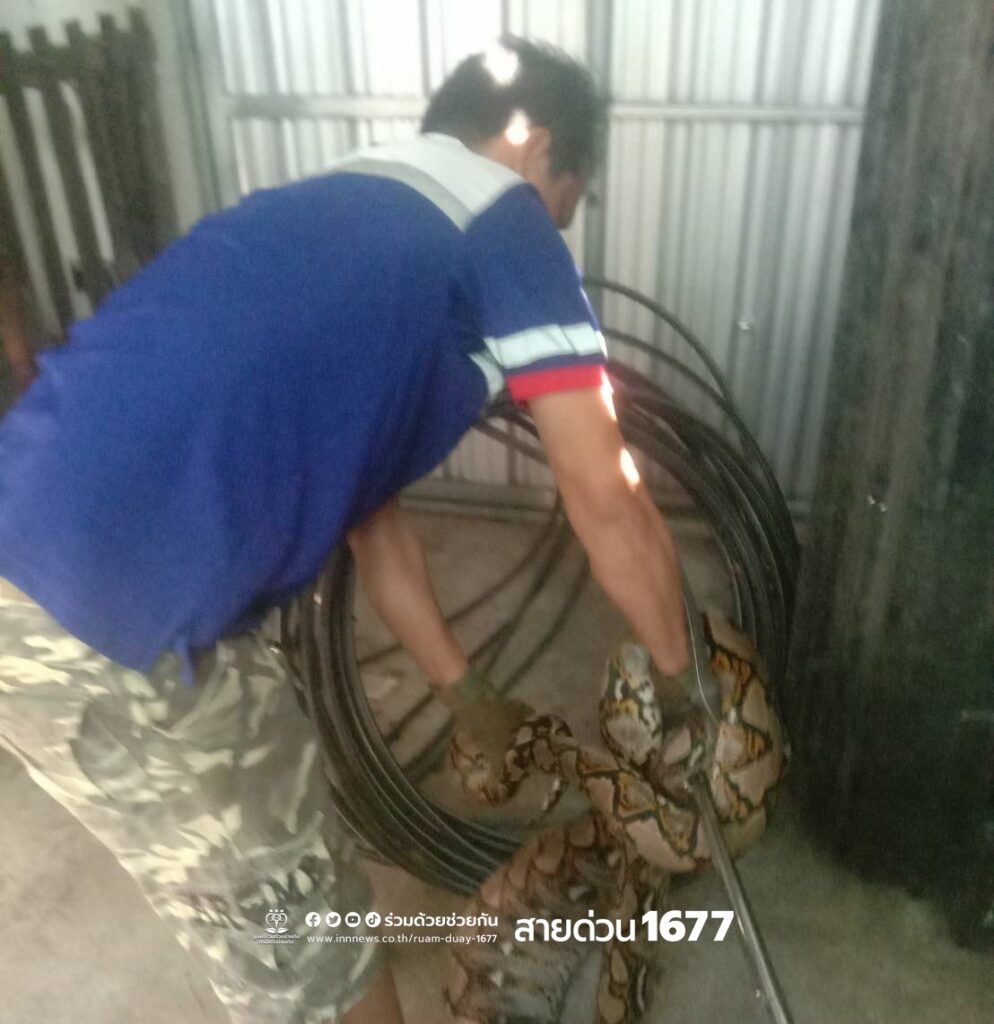 ช่วยจับงูเหลือมใต้ต้นกล้วย ถนนนวมินทร์