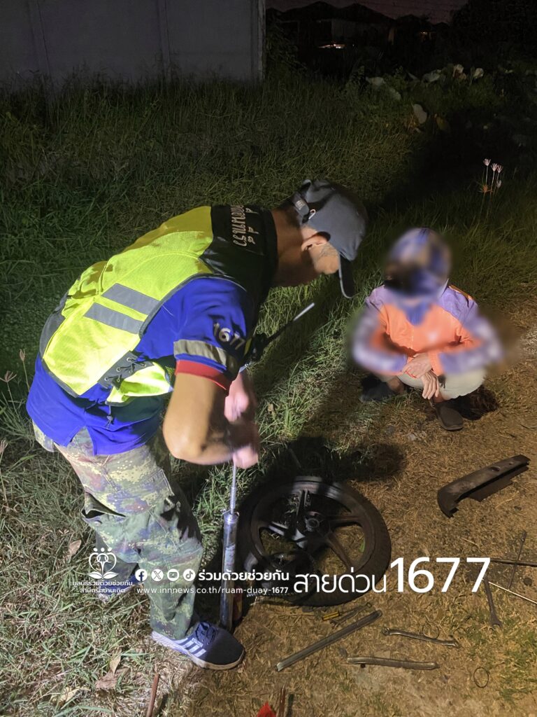 รถล้อยางรั่ว โทร.1677 ร่วมด้วยช่วยกัน ประสานอาสาร่วมด้วยเข้าช่วยเหลือ