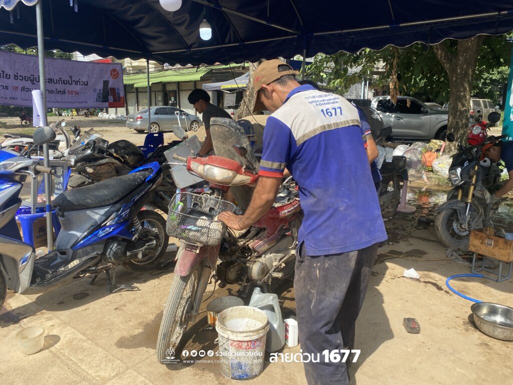 จิตอาสา ซ่อมรถฟรี หลังน้ำท่วมเชียงรายลดลง