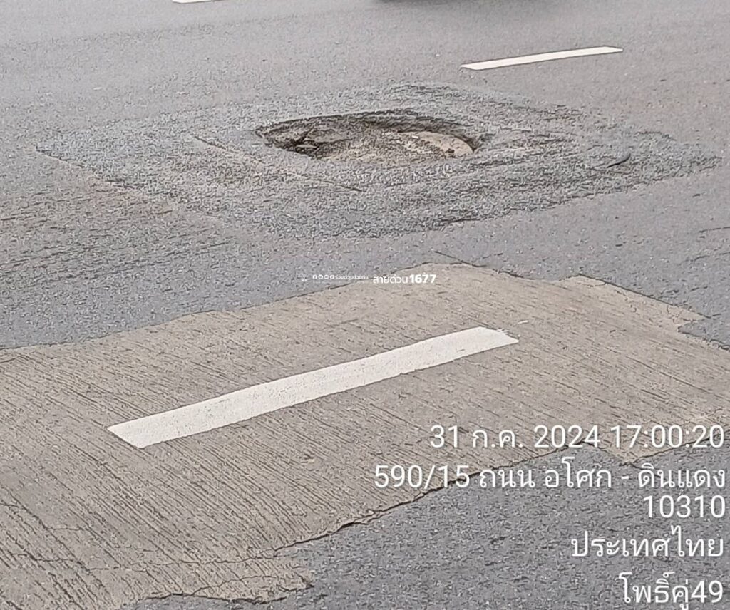 ระวัง! ถนนอโศก-ดินแดง ชำรุดเป็นหลุมลึก
