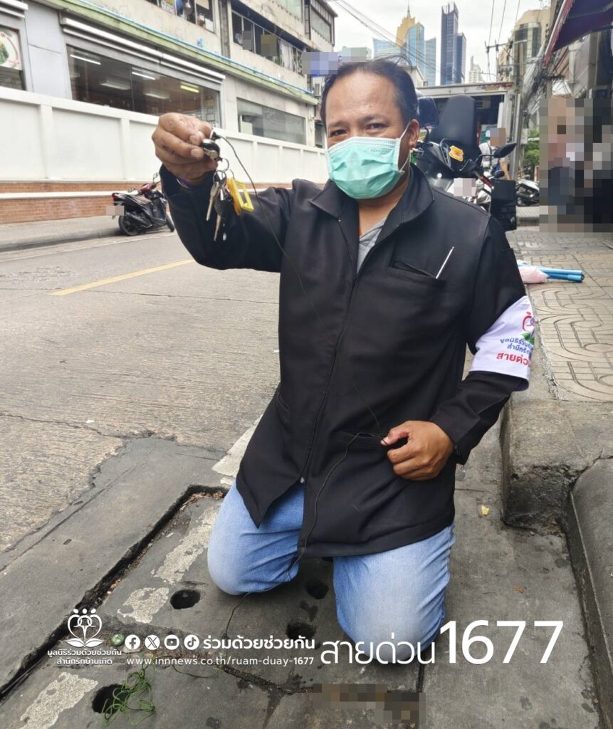 ทำพวงกุญแจตกท่อระบายน้ำ โทร.1677 ร่วมด้วยช่วยกัน พร้อมประสานช่วยเหลือ
