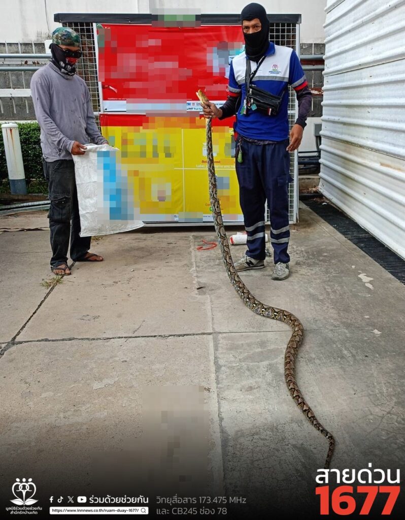 ตกใจ! งูเหลือมอยู่ในตู้เชื่อม ซอยลาดพร้าว 81 อาสาร่วมด้วยเร่งช่วยเหลือ