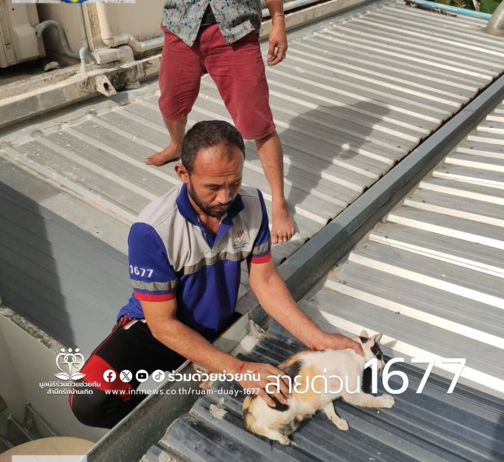 เจ้าของช่วยลุ้น อาสาปีนหลังคา ช่วยแมวติดซอกบ้าน ย่านประเวศ