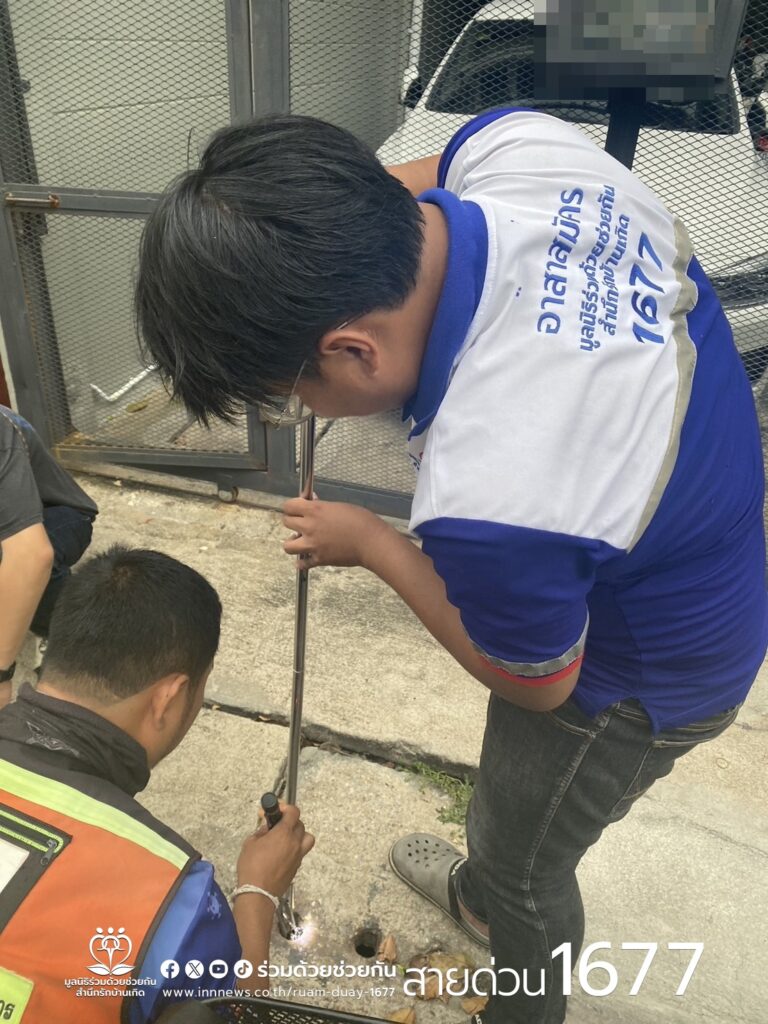 พวงกุญแจตกท่อระบายน้ำ โทร.1677 ร่วมด้วยช่วยกัน พร้อมประสานช่วยเหลือ
