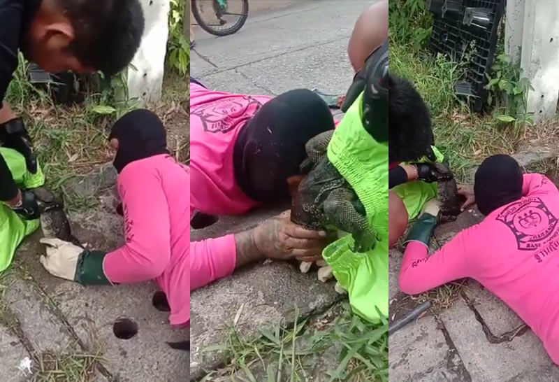 ลุ้นระทึก! ช่วยตัวเงินตัวทองตัวติดท่อระบายน้ำ ย่านลาดพร้าว