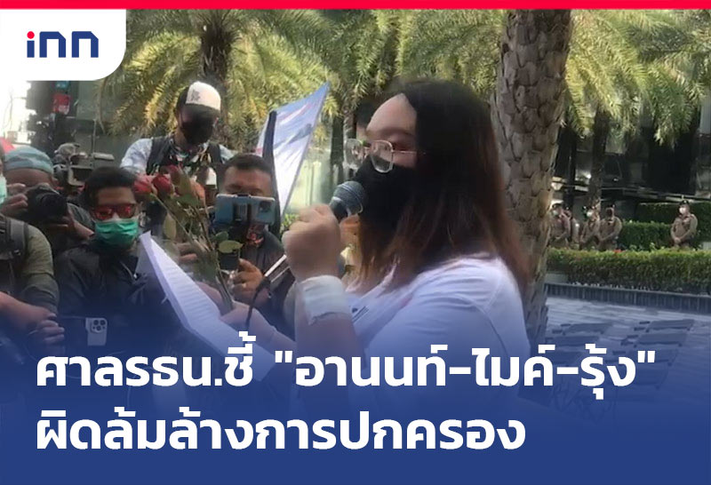 ศาลรธน.ชี้"อานนท์-ไมค์-รุ้ง" ใช้สิทธิเสรีภาพในการแสดงออกเพื่อล้มล้างการปกครอง สั่ง เลิกกระทำการ ลักษณะนี้ต่อไปในอนาคต