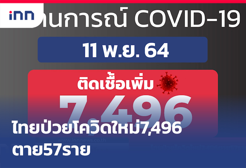 เพิ่มขึ้น!ป่วยโควิดใหม่ 7,496 ราย รวมสะสม 1,996,969 ราย เสียชีวิตเพิ่ม 62 ราย และรักษาหาย 7,697 ราย เหลือรักษาตัวใน รพ.96,450 คน