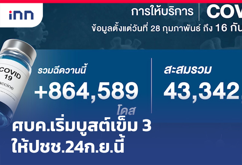 ศบค.เริ่มบูสเตอร์โดส เข็ม 3 ให้ประชาชน 24 ก.ย.นี้ หลังพบ เข็มแรกครอบคลุมเกิน 50 % แล้ว 8 จังหวัด