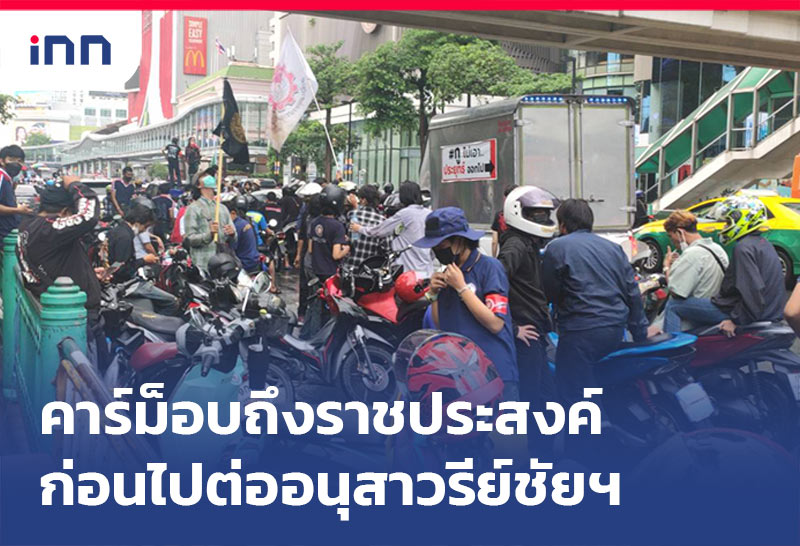 คาร์ม็อบ เคลื่อนขบวนถึงแยกราชประสงค์ ก่อนมุ่งหน้า อนุสาวรีย์ชัยสมรภูมิ ก่อนยุติชุมนุม 1 ทุ่ม