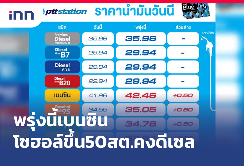 ปตท. บางจาก ปรับขึ้นราคาขายปลีกน้ำมันเบนซินและแก๊สโซฮอล์ทุกชนิด 50 สต. คงกลุ่มดีเซล มีผลพรุ่งนี้ 8 ก.พ.2565