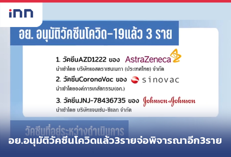 อย. เผยอนุมัติวัคซีนโควิด-19 ไปแล้ว 3 ราย อยู่ระหว่างประเมินคำขอขึ้นทะเบียน 1 ราย