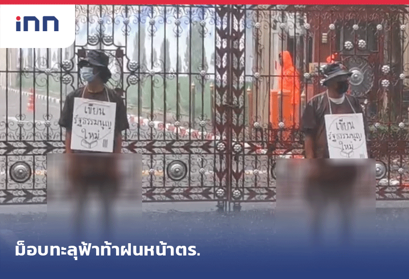 ม็อบทะลุฟ้าท้าลมฝน ใส่ชุดนักโทษยืน112 นาที หน้า ตร. จี้ยกเลิกม.112