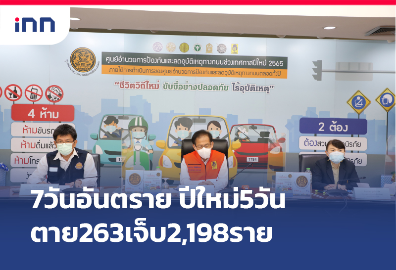 ศปถ.เข้มดูแลถนนสายหลัก-สายรอง รับประชาชนเดินทางกลับเข้ากรุง ขณะสถิติ 5 วันเกิดอุบัติเหตุรวม 2,221 ครั้ง เสียชีวิตรวม 263 ราย ผู้บาดเจ็บรวม 2,198 คน