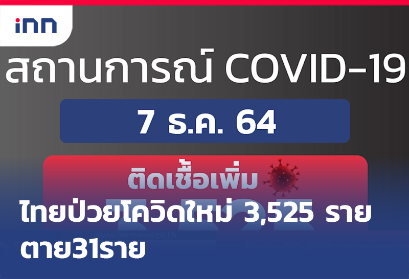 ลดต่อเนื่อง!ป่วยโควิดใหม่ 3,525 ราย สะสม 2,148,766 ราย ไม่นับ ATK อีก 752 ราย ขณะเสียชีวิตเพิ่ม 31 ราย รักษาหาย 6,109 ราย เหลือรักษาตัวใน รพ. 66,395 คน