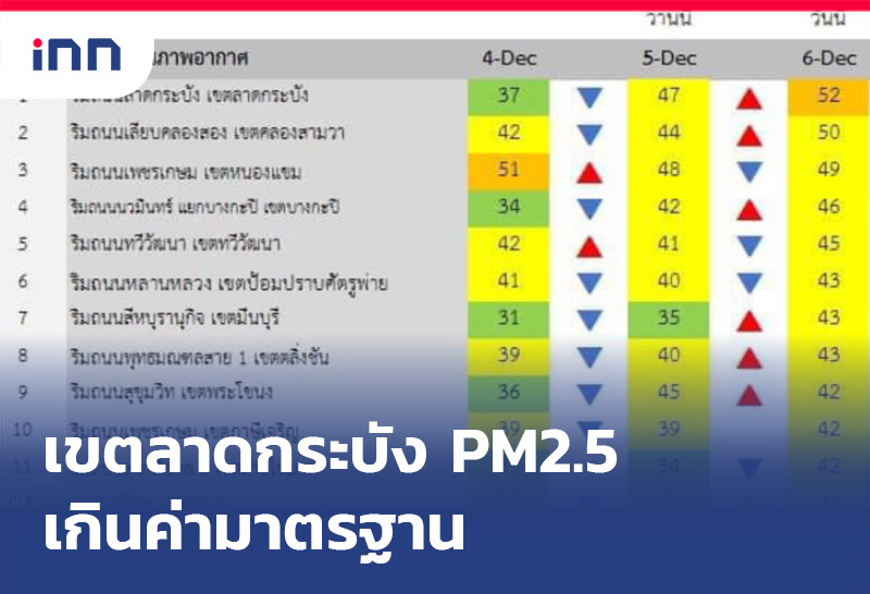 ศกพ. รายงานค่าฝุ่น PM2.5 กทม.วันนี้ พบเขตลาดกระบังเกินค่ามาตรฐาน