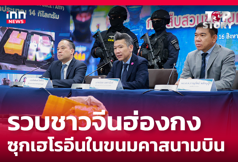 ล.ต.ท. ภาณุรัตน์ หลักบุญ เลขาธิการคณะกรรมการป้องกันและปราบปรามยาเสพติด นำทีมแถลงข่าวการจับกุมผู้ต้องหาชาวจีนฮ่องกง 4 ราย พร้อมของกลางเฮโรอีน น้ำหนักประมาณ 14 กิโลกรัม ซุกซ่อนอยู่ในกล่องขนมขบเคี้ยว ภายในกระเป๋าเดินทางแบบลาก เตรียมเดินทางออกไปยังฮ่องกง