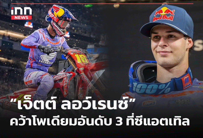 ตอกย้ำความเป็นสุดยอดนักบิด สำหรับ “เจ็ตต์ ลอว์เรนซ์” ที่ล่าสุด ควบ Honda CRF450R คว้าโพเดียมอันดับ 3 รั้งผู้นำคะแนนสะสม ศึก AMA Supercross 2024 ที่ซีแอตเทิล