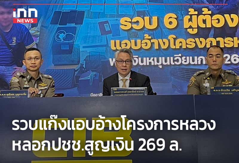 ที่ กองบังคับการปราบปรามกระทำความผิดเกี่ยวกับอาชญากรรมทางเศรษฐกิจ (บก.ปอศ.) ได้มีการแถลงจับกุม ผู้ต้องหา 6 ราย แอบอ้างโครงการหลวง พบเงินหมุนเวียน 269 ล้านบาท
