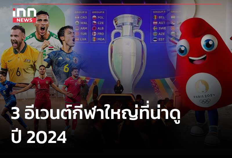 3 อีเวนต์กีฬารายการใหญ่ ในปี 2024 ที่บรรดาแฟนๆ กีฬาต่างเฝ้ารอคอย เเละถือเป็นไฮไลท์ของปีนี้ด้วย ประกอบไปด้วย ''ฟุตบอลเอเชียน คัพ 2023'' "ฟุตบอลยูโร 2024" และ "โอลิมปิกเกมส์ 2024"