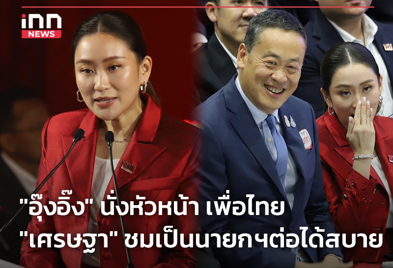 “อุ๊งอิ๊ง” นั่งหัวหน้า เพื่อไทย “เศรษฐา” ชมเป็นนายกฯต่อได้สบาย