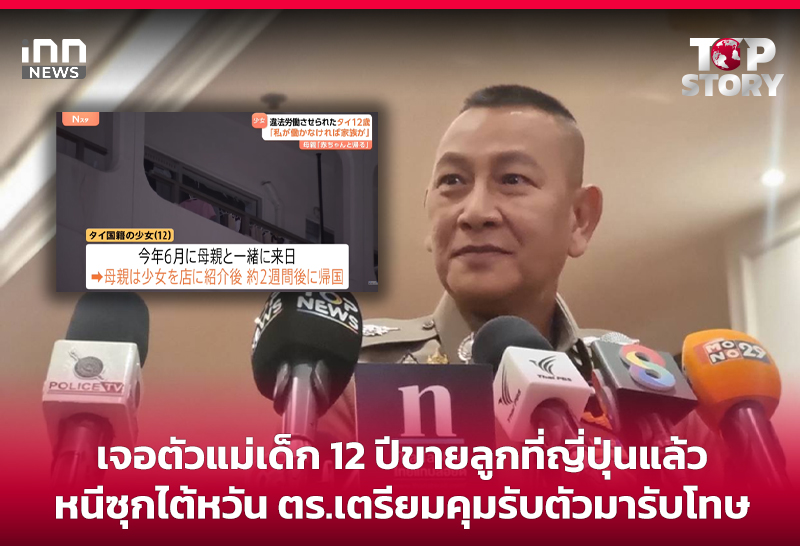 เจอตัวแม่เด็ก12 ปีขายลูกที่ญี่ปุ่นแล้ว หนีซุกไต้หวัน ตร.เตรียมคุมรับตัวมารับโทษ