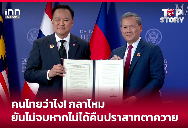 นายกรัฐมนตรี เผยเงื่อนไข 4 ข้อตกลงสันติภาพไทย - กัมพูชา คืบหน้าย้ายฐานออกแล้ว 40 กว่าฐาน ขณะ "รมว.กลาโหม"ยืนยันปราสาทตาควายเป็นของเรา ชี้ไม่มีนำเรื่องเชลยศึกไปต่อรอง ประกาศ?หนักแน่นชีวิตนี้ไม่ขอคุยเรื่องเปิดด่าน